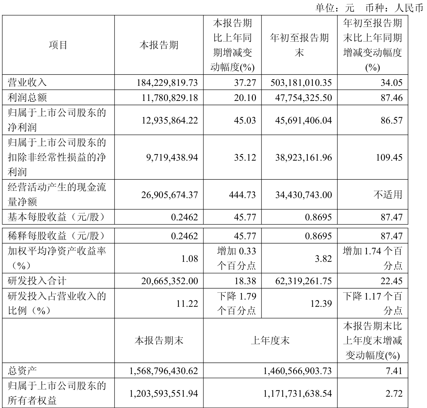 中证智能财讯茂莱光学(688502)10月31日披露2025年第三季度报告。前三季度公司实现营业总收入5.03亿元,同比增长34.05%;归母净利润4569.14万元,同比增长86.57%;扣非净利润3892.32万元,同比增长109.45%;经营活动产生的现金流量净额为3443.07万元,上年同期为-4079万元;报告期内,茂莱光学基本每股收益为0.8695元,加权平均净资产收益率为3.82%。