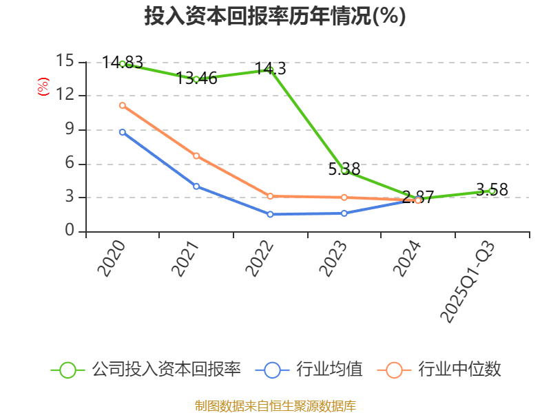 盈利能力方面, 2025年前三季度公司加权平均净资产收益率为3.82%,同比上升1.74个百分点。公司2025年前三季度投入资本回报率为3.58%,较上年同期上升1.6个百分点。