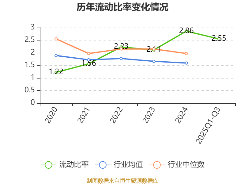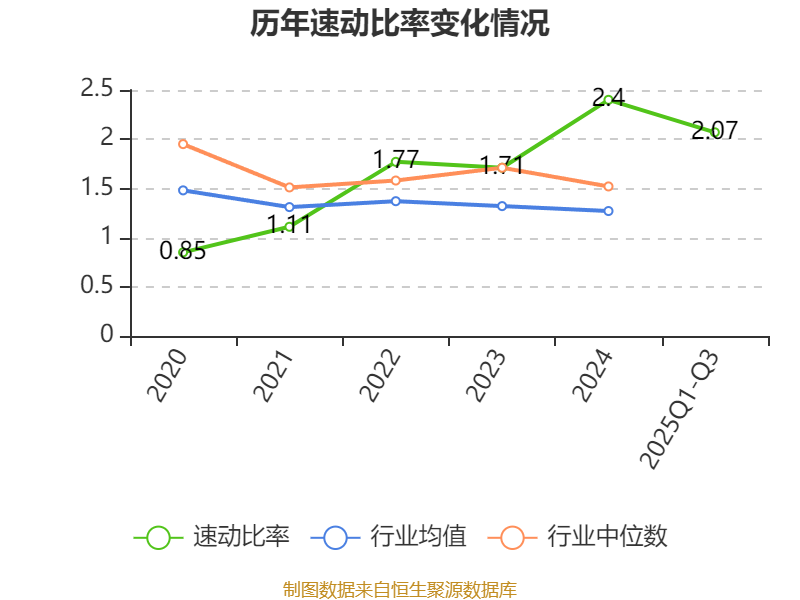 2025年前三季度,公司流动比率为2.55,速动比率为2.07。