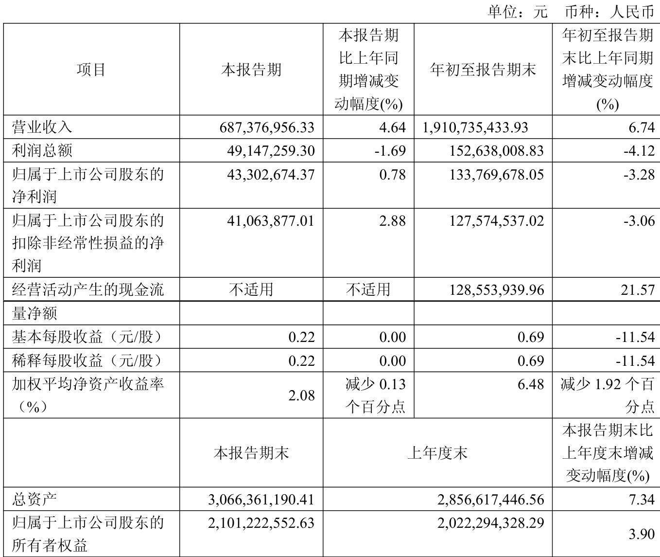 中证智能财讯星德胜(603344)10月31日披露2025年第三季度报告。前三季度公司实现营业总收入19.11亿元,同比增长6.74%;归母净利润1.34亿元,同比下降3.28%;扣非净利润1.28亿元,同比下降3.06%;经营活动产生的现金流量净额为1.29亿元,同比增长21.57%;报告期内,星德胜基本每股收益为0.69元,加权平均净资产收益率为6.48%。