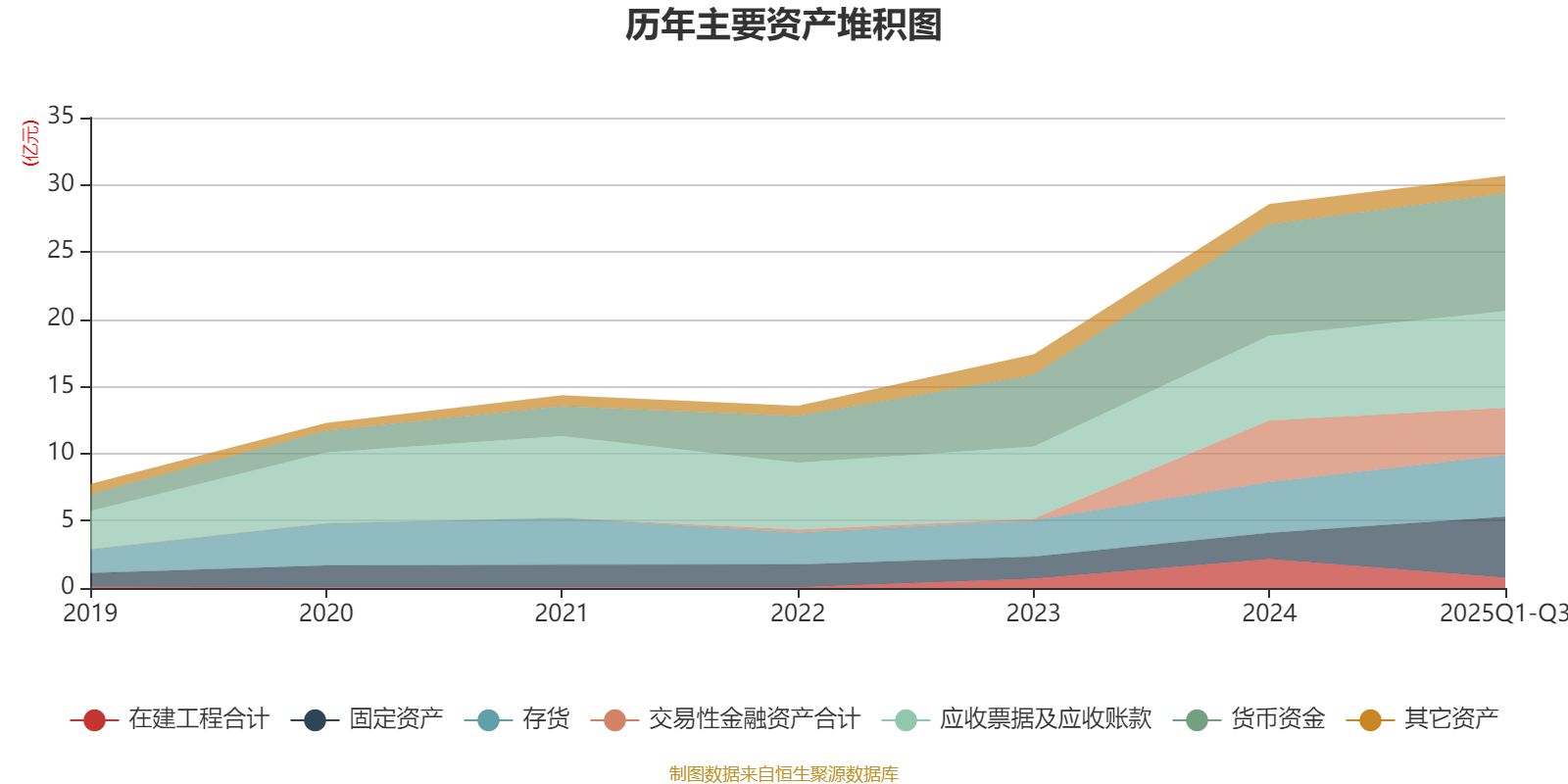 资产重大变化方面,截至2025年三季度末,公司固定资产较上年末增加132.56%,占公司总资产比重上升7.95个百分点;在建工程合计较上年末减少64.12%,占公司总资产比重下降5.01个百分点;交易性金融资产合计较上年末减少23.4%,占公司总资产比重下降4.59个百分点;存货较上年末增加21.33%,占公司总资产比重上升1.72个百分点。