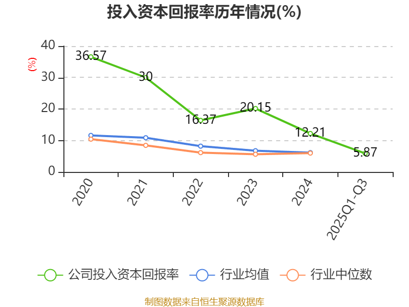 盈利能力方面, 2025年前三季度公司加权平均净资产收益率为6.48%,同比下降1.92个百分点。公司2025年前三季度投入资本回报率为5.87%,较上年同期下降2.91个百分点。