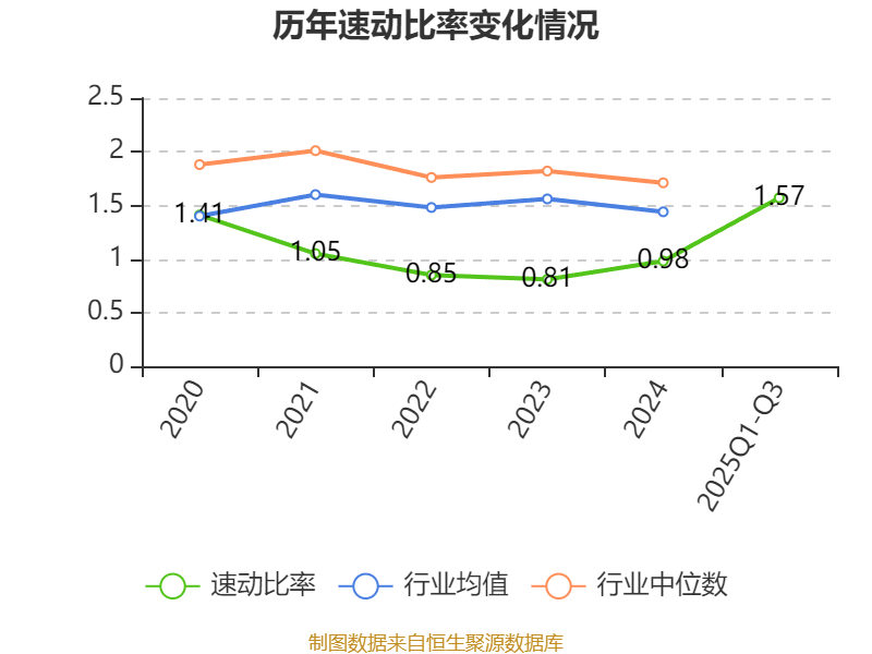 2025年前三季度,公司流动比率为2.17,速动比率为1.57。