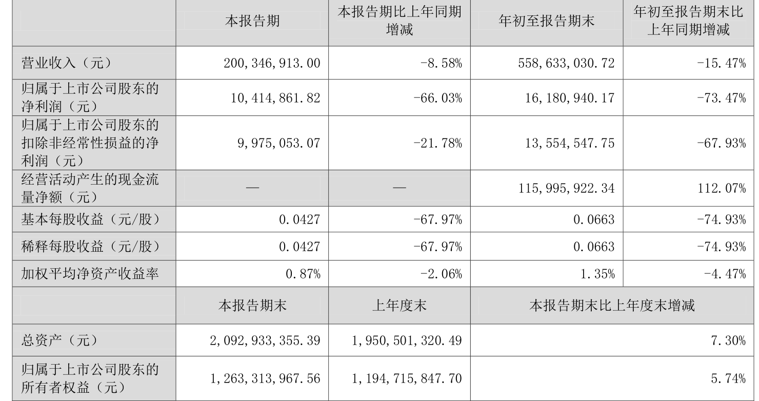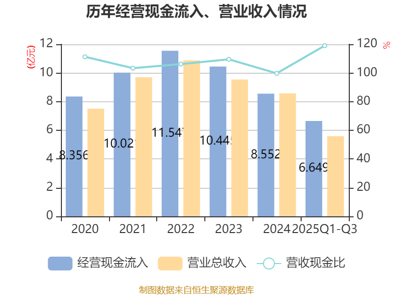 2025年前三季度,公司经营活动现金流净额为1.16亿元,同比增长112.07%;筹资活动现金流净额335.63万元,同比增加1465.75万元;投资活动现金流净额-6809.14万元,上年同期为-4491.78万元。