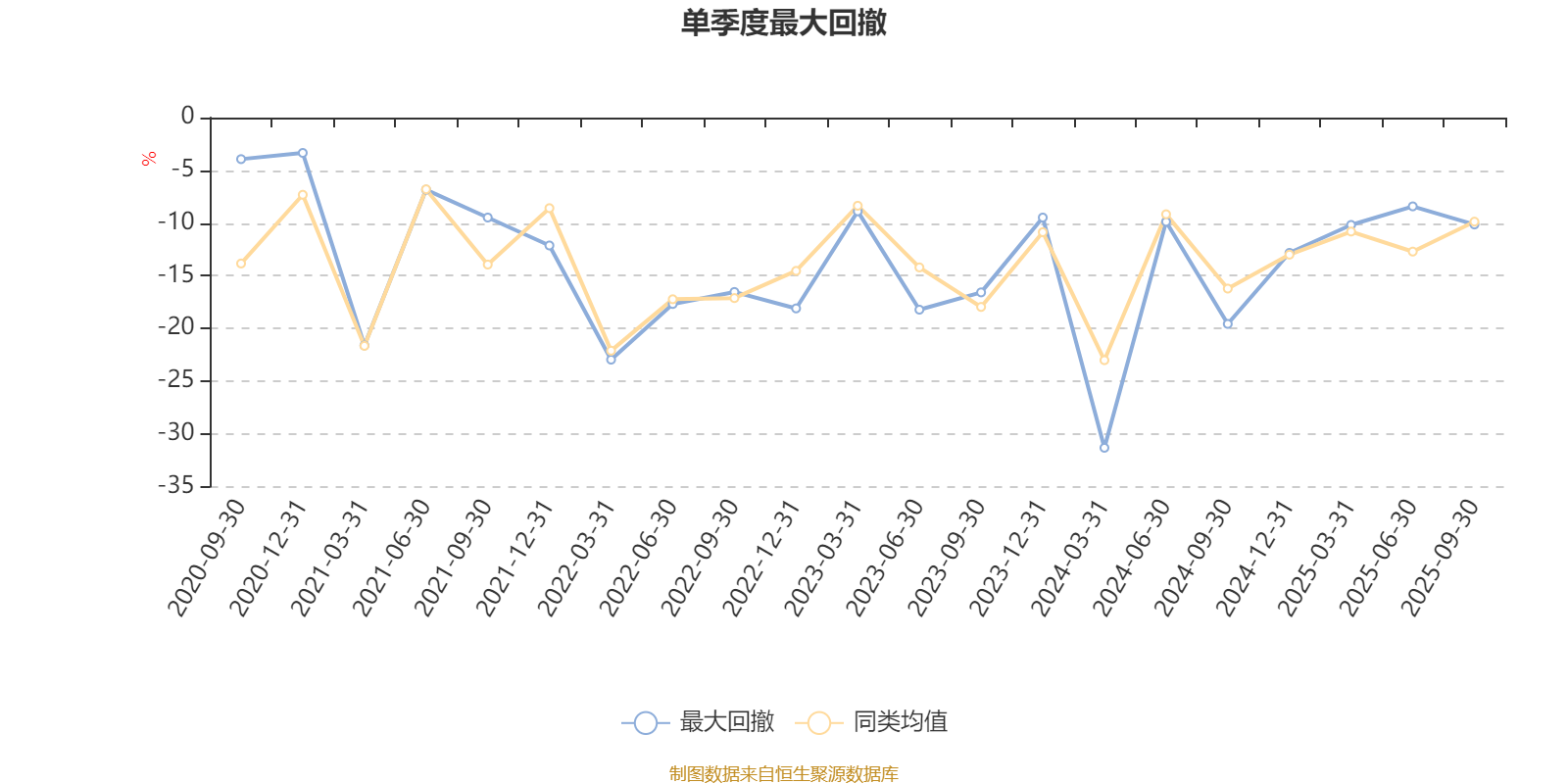 截至10月29日,基金近三年最大回撤为41.39%,同类可比基金排名60/159。单季度最大回撤出现在2024年一季度,为31.32%。