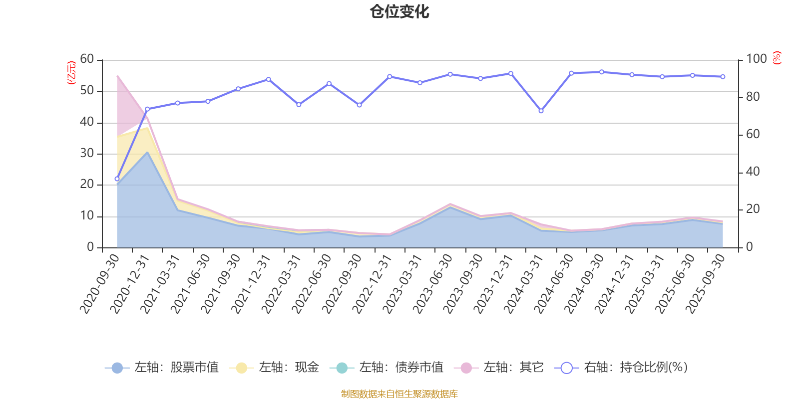 据定期报告数据统计,近三年平均股票仓位为89.94%,同类平均为86.77%。2024年三季度末基金达到93.57%的最高仓位,2020年三季度末最低,为36.65%。