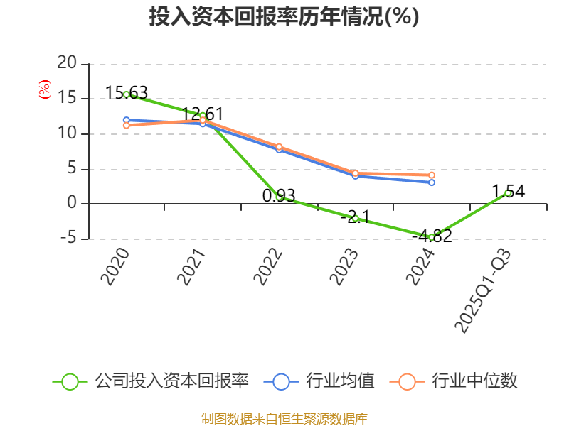 盈利能力方面, 2025年前三季度公司加权平均净资产收益率为1.02%,同比下降0.08个百分点。公司2025年前三季度投入资本回报率为1.54%,较上年同期下降0.06个百分点。