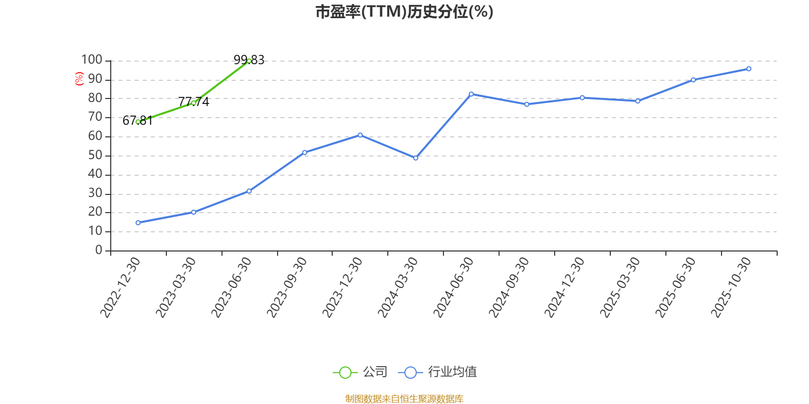 市盈率、市净率为负时,不显示当期分位数,会导致折线图中断。