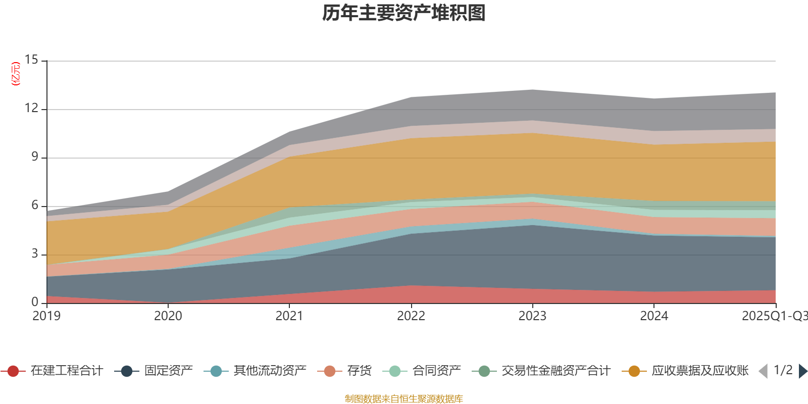 资产重大变化方面,截至2025年三季度末,公司固定资产较上年末减少5.85%,占公司总资产比重下降2.35个百分点;预付款项较上年末增加351.95%,占公司总资产比重上升1.67个百分点;应收款项融资较上年末减少90.86%,占公司总资产比重下降1.22个百分点;其他应收款(含利息和股利)较上年末增加50.07%,占公司总资产比重上升0.9个百分点。