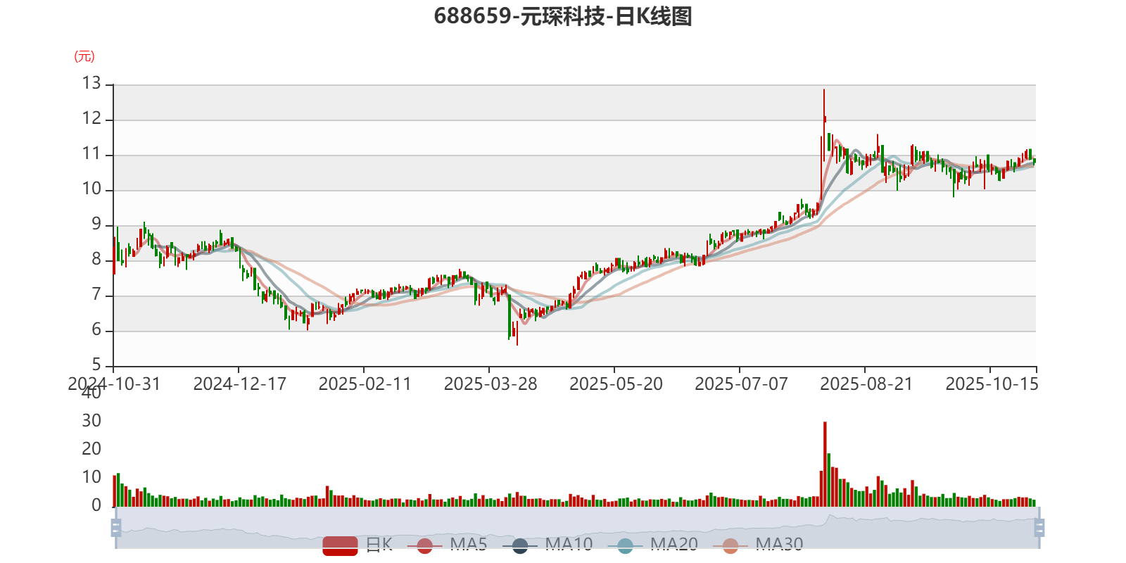 以10月30日收盘价计算,元琛科技目前市盈率(TTM)约为-27.75倍,市净率(LF)约3.22倍,市销率(TTM)约2.53倍。
