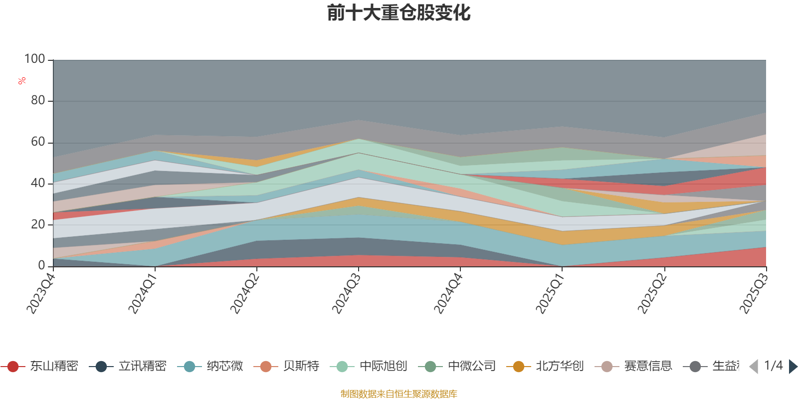 该基金持股集中度较高。截至2025年三季度末,基金十大重仓股分别是兆易创新、南芯科技、东山精密、胜宏科技、纳芯微、海光信息、新易盛、中际旭创、中微公司、生益科技。