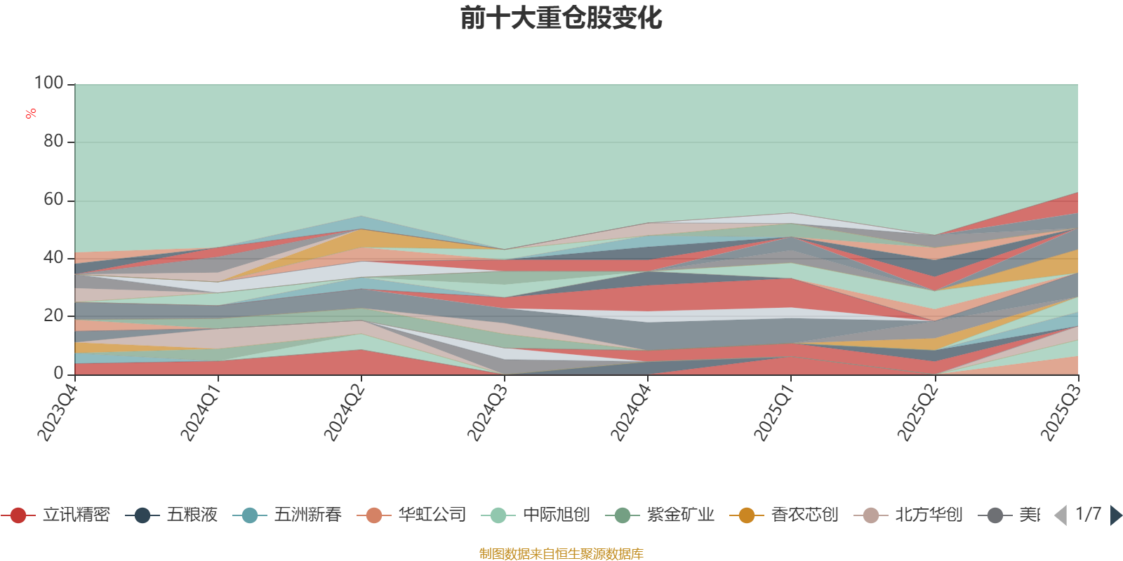 基金管理人在三季报中表示,我们看好国内的模型和应用不断进步,看好大模型厂商持续投入资本开支,看好国产晶圆厂先进制程扩产,海外 AI 发展过程在国内也会发生。我们布局国产 AI 芯片、晶圆厂、半导体设备等 AI 硬件先进制程产业链各个环节。