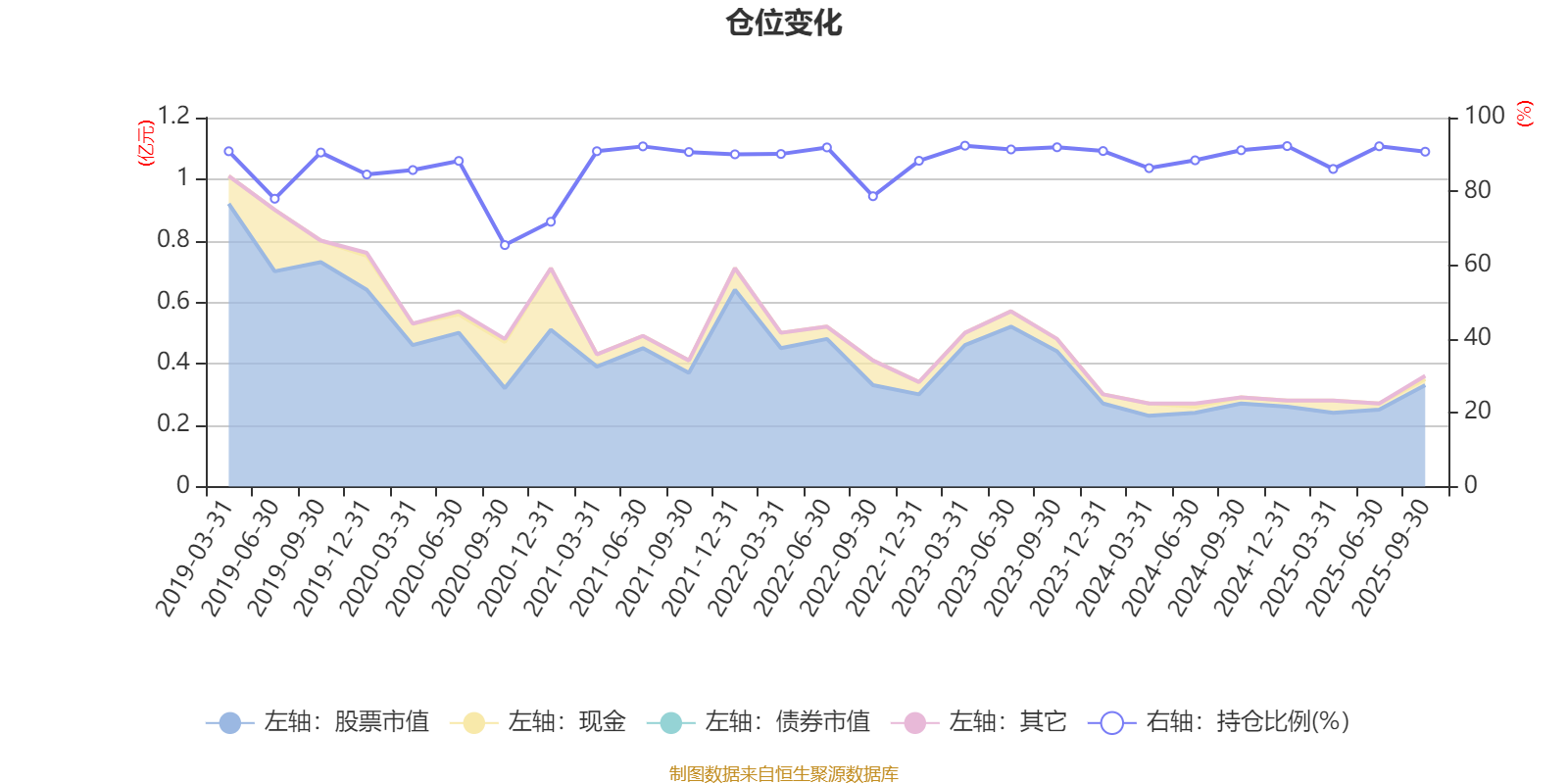 据定期报告数据统计,近三年平均股票仓位为90.18%,同类平均为72.35%。2023年一季度末基金达到92.39%的最高仓位,2020年三季度末最低,为65.45%。