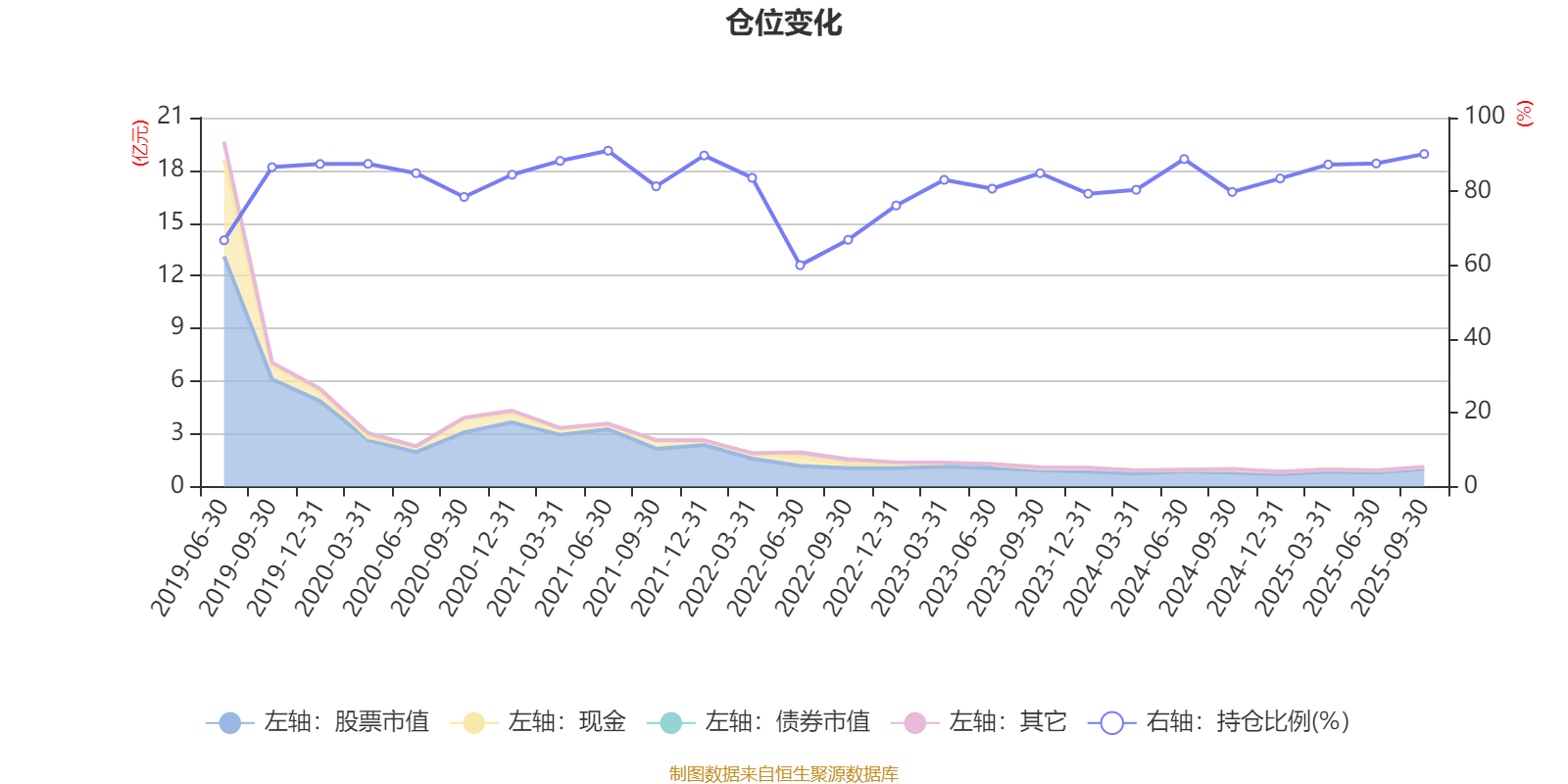据定期报告数据统计,近三年平均股票仓位为83.49%,同类平均为83.73%。2021年上半年末基金达到91.02%的最高仓位,2022年上半年末最低,为59.99%。