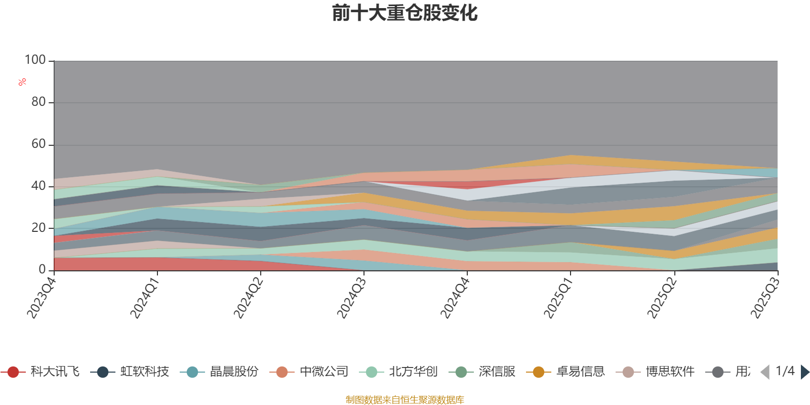 截至2025年三季度末,基金十大重仓股分别是海光信息、北方华创、卓易信息、金山办公、鼎捷数智、深信服、税友股份、汉得信息、用友网络、虹软科技。