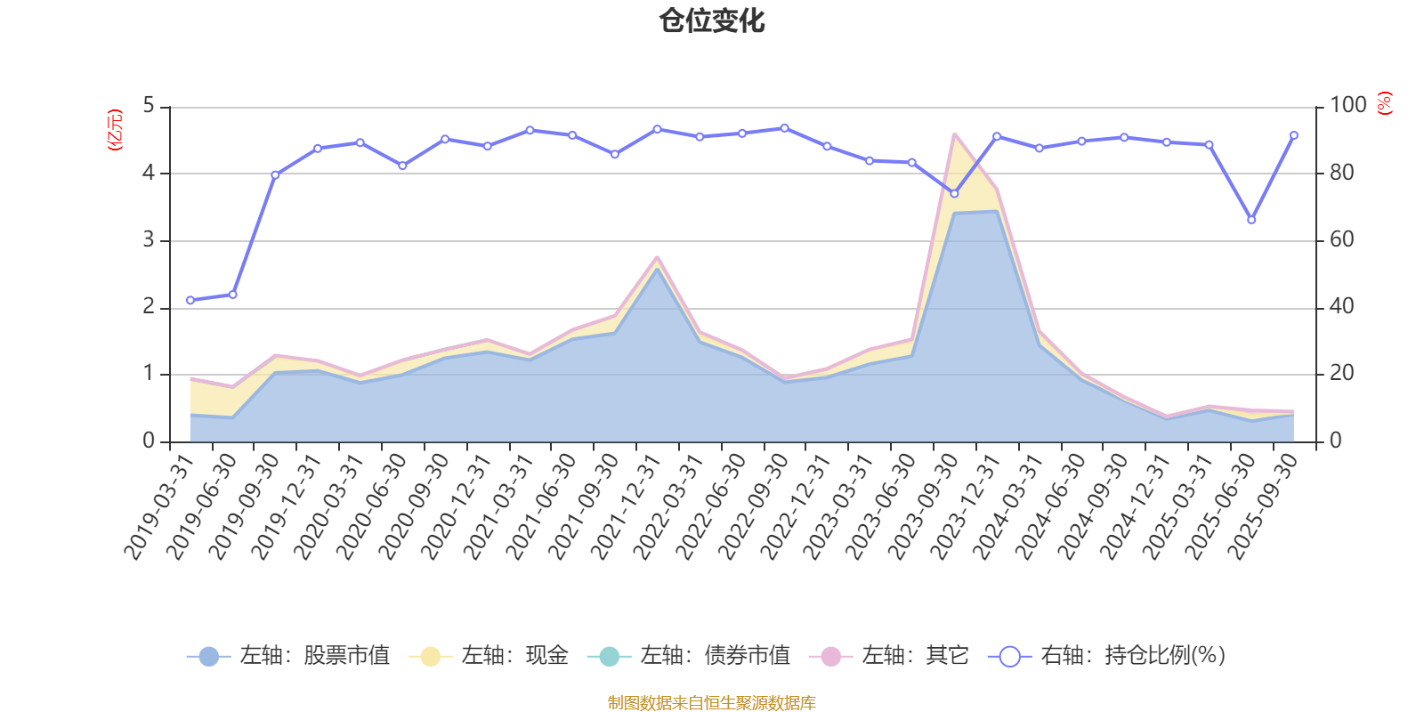 据定期报告数据统计,近三年平均股票仓位为85.41%,同类平均为72.35%。2022年三季度末基金达到93.65%的最高仓位,2019年一季度末最低,为42.27%。