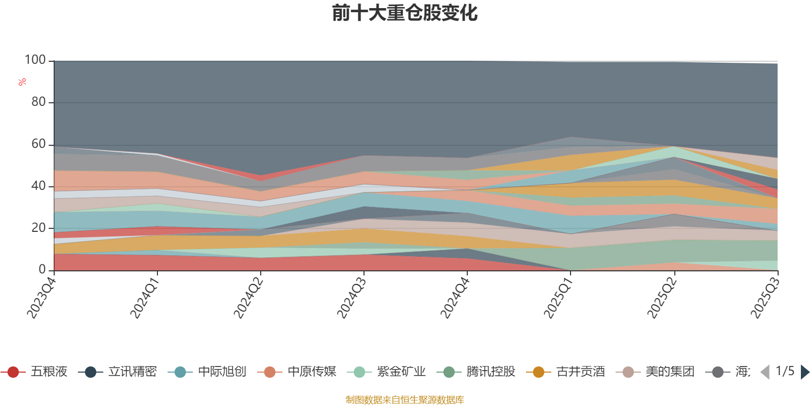 截至2025年三季度末,基金十大重仓股分别是腾讯控股、宁德时代、三一重工、徐工机械、中国财险、美的集团、紫金矿业、阿里巴巴-W、ST华通、贵州茅台。