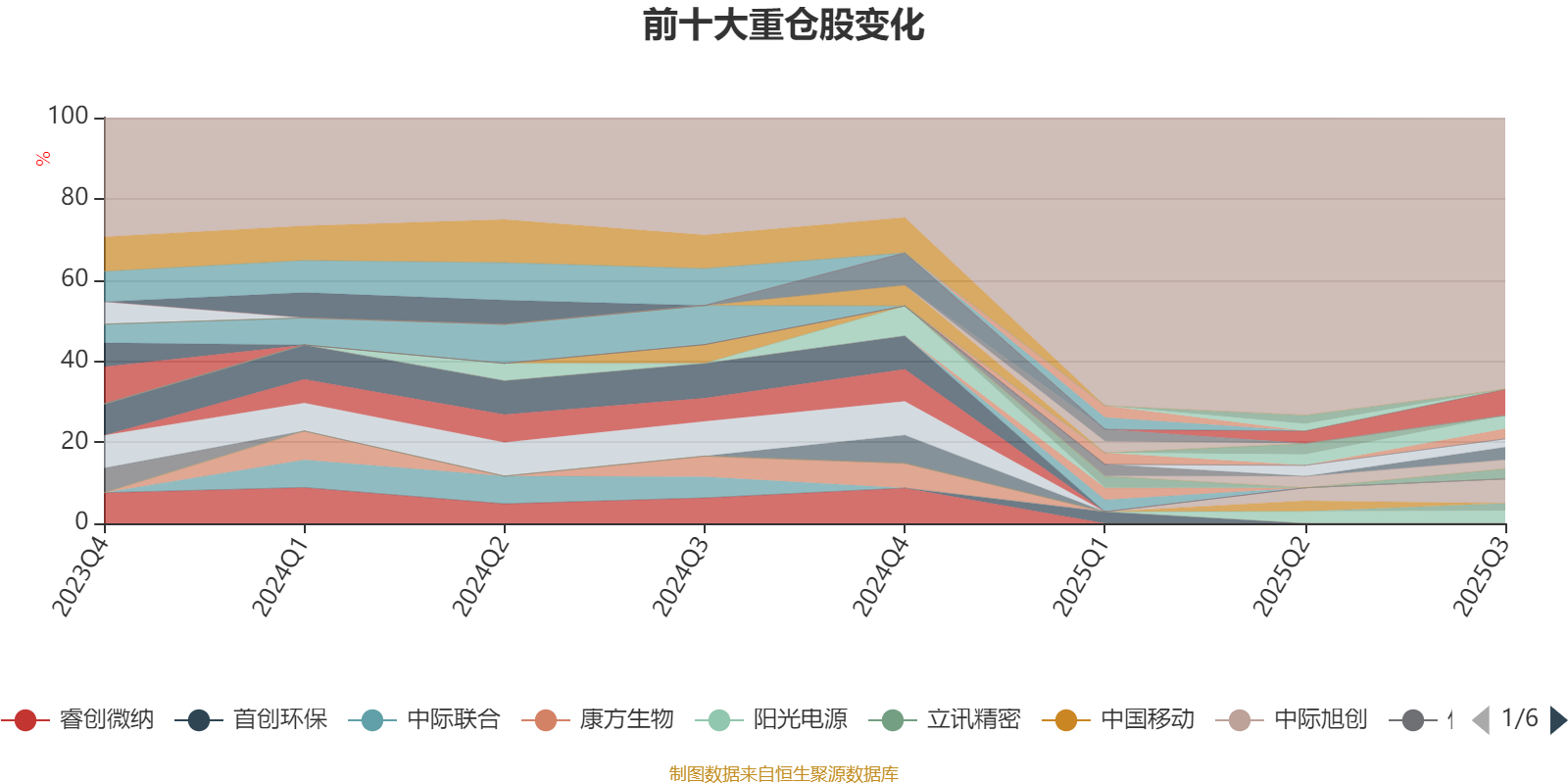 截至2025年三季度末,基金十大重仓股分别是新易盛、中际旭创、恒瑞医药、药明康德、阳光电源、东方财富、比亚迪、汇川技术、澜起科技、立讯精密。