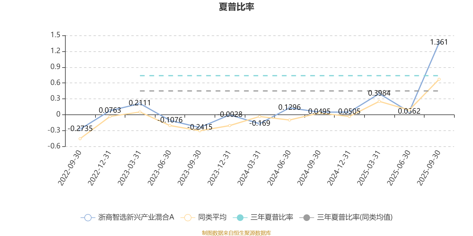 截至9月30日,基金近三年夏普比率为0.7389,位于同类可比基金61/360。