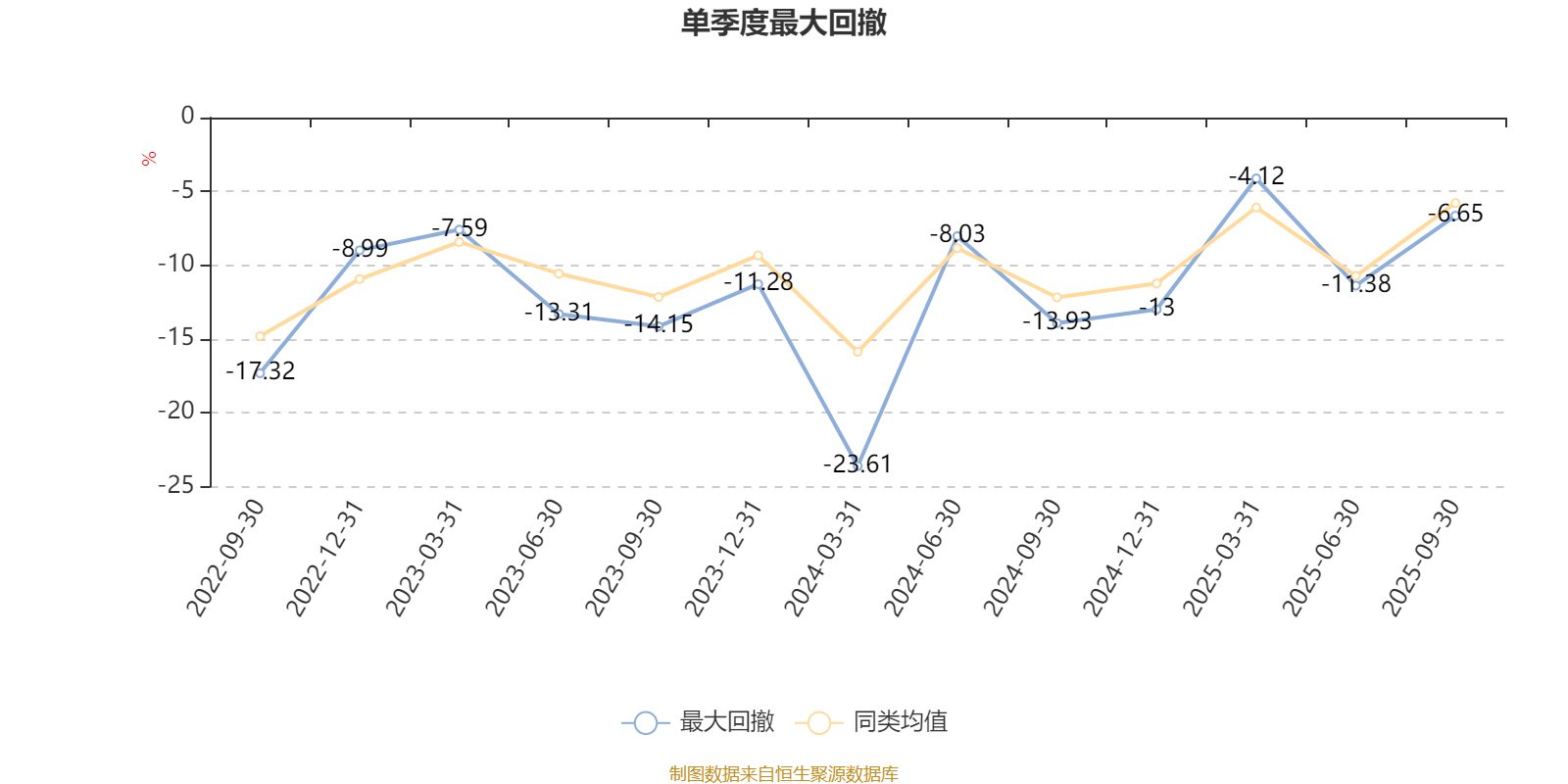 截至10月29日,基金近三年最大回撤为38.63%,同类可比基金排名194/363。单季度最大回撤出现在2024年一季度,为23.61%。