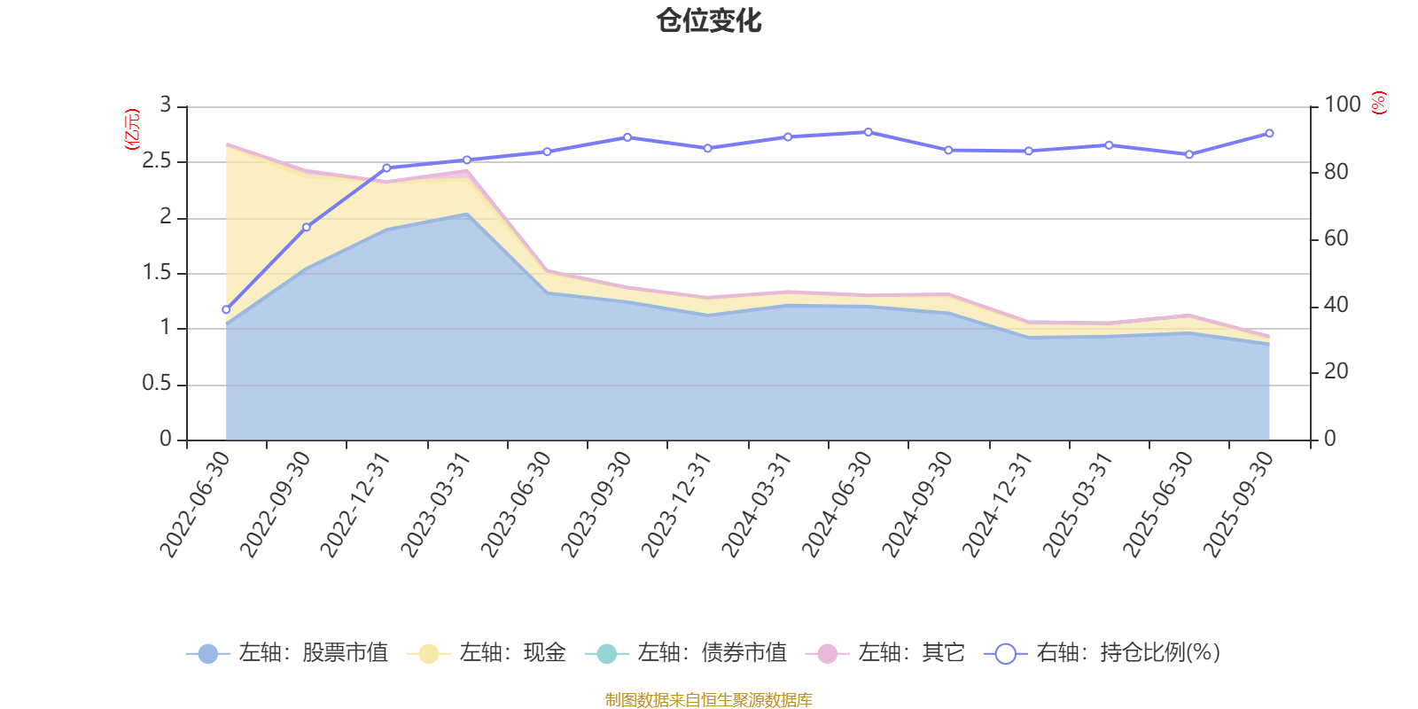 据定期报告数据统计,近三年平均股票仓位为87.71%,同类平均为86.57%。2024年上半年末基金达到92.3%的最高仓位,2022年上半年末最低,为39.1%。