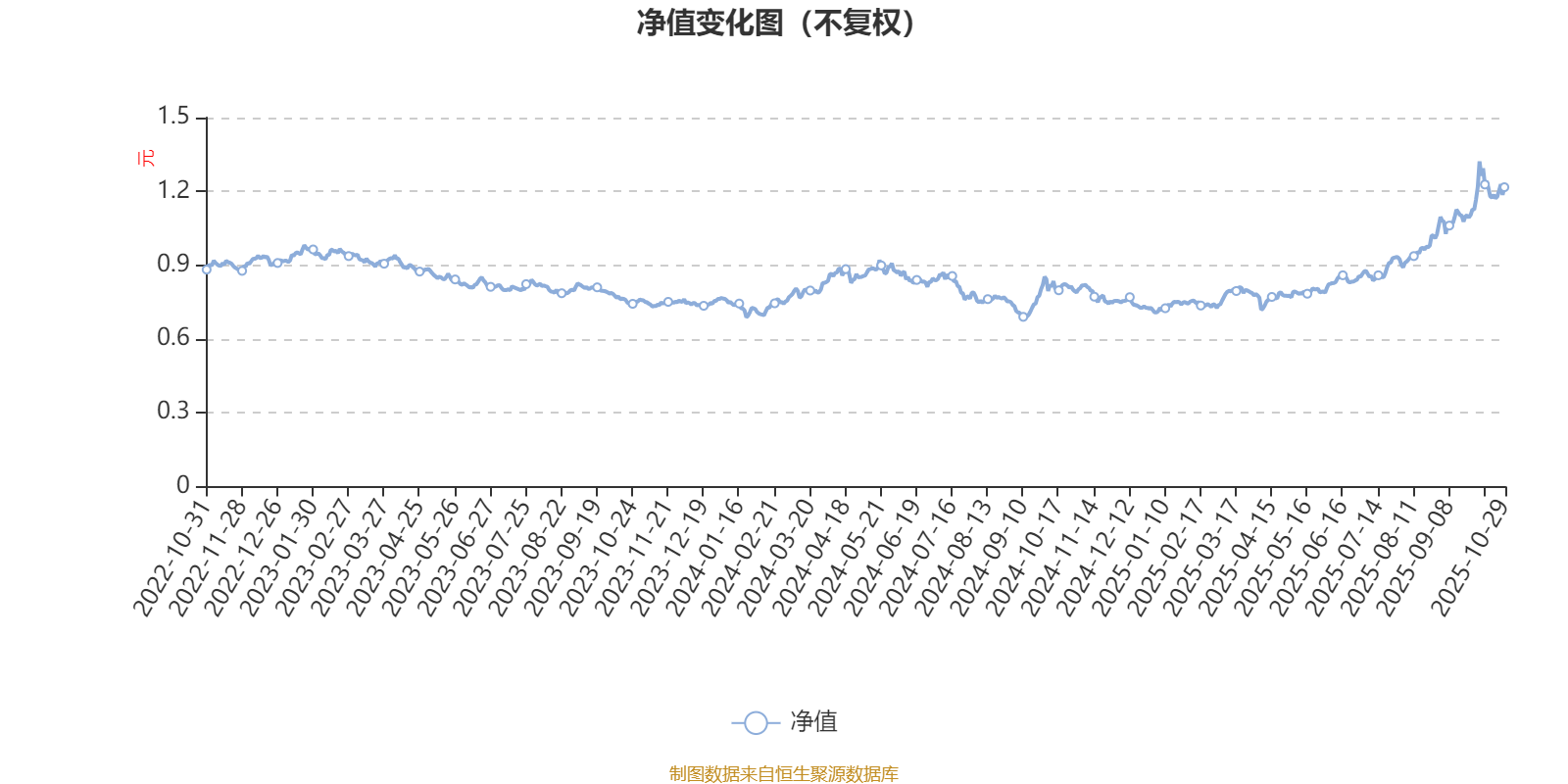 基金管理人在三季报中表示,本基金三季度持仓以有色金属、化工为主。主权货币信用弱化,黄金成了最佳对冲工具,各国央行持续增持黄金,金价创出新高。供应链“逆全球化”、人工智能基础设施投资、资源民族主义抬头的共同作用下,工业金属、小金属的投资机会涌现,资源的战略价值正被系统性重估。“反内卷”是国内未来数年的重点工作之一,以化工为代表的产能过剩的中游制造业将持续受益,投资回报率有望持续回升。
