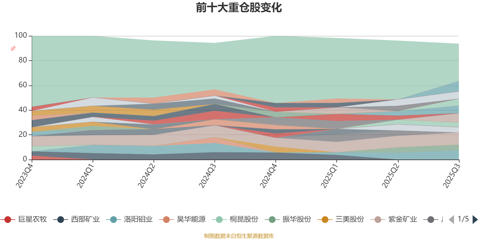 截至2025年三季度末,基金十大重仓股分别是紫金矿业、华友钴业、洛阳钼业、江西铜业股份、华锡有色、山东黄金、五矿资源、振华股份、招金矿业、中国黄金国际。