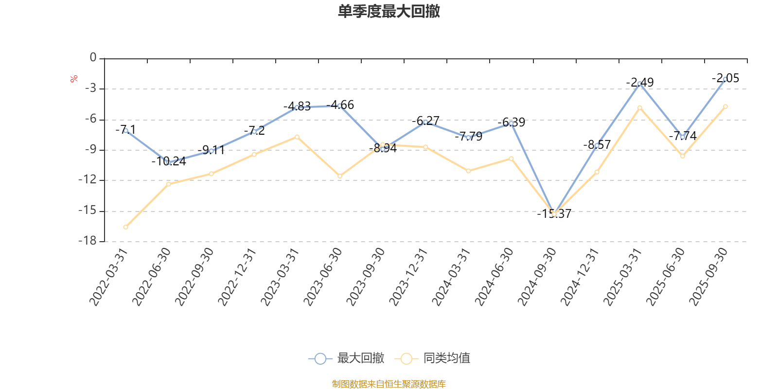 截至10月29日,基金近三年最大回撤为18.51%,同类可比基金排名1/29。单季度最大回撤出现在2024年三季度,为15.37%。