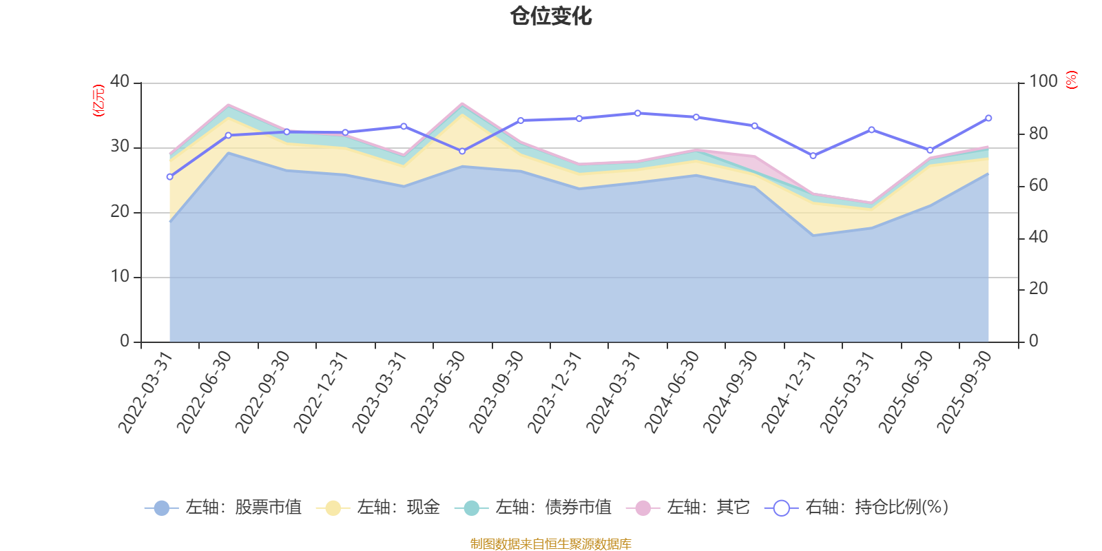 据定期报告数据统计,近三年平均股票仓位为81.78%,同类平均为86.57%。2024年一季度末基金达到88.23%的最高仓位,2022年一季度末最低,为63.71%。