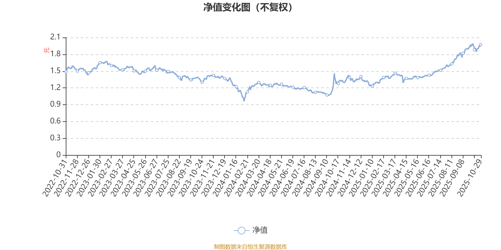 通过所选区间该基金净值增长率分位图,可以观察该基金与同类基金业绩比较情况。图为坐标原点到区间内某时点的净值增长率在同类基金中的分位数。