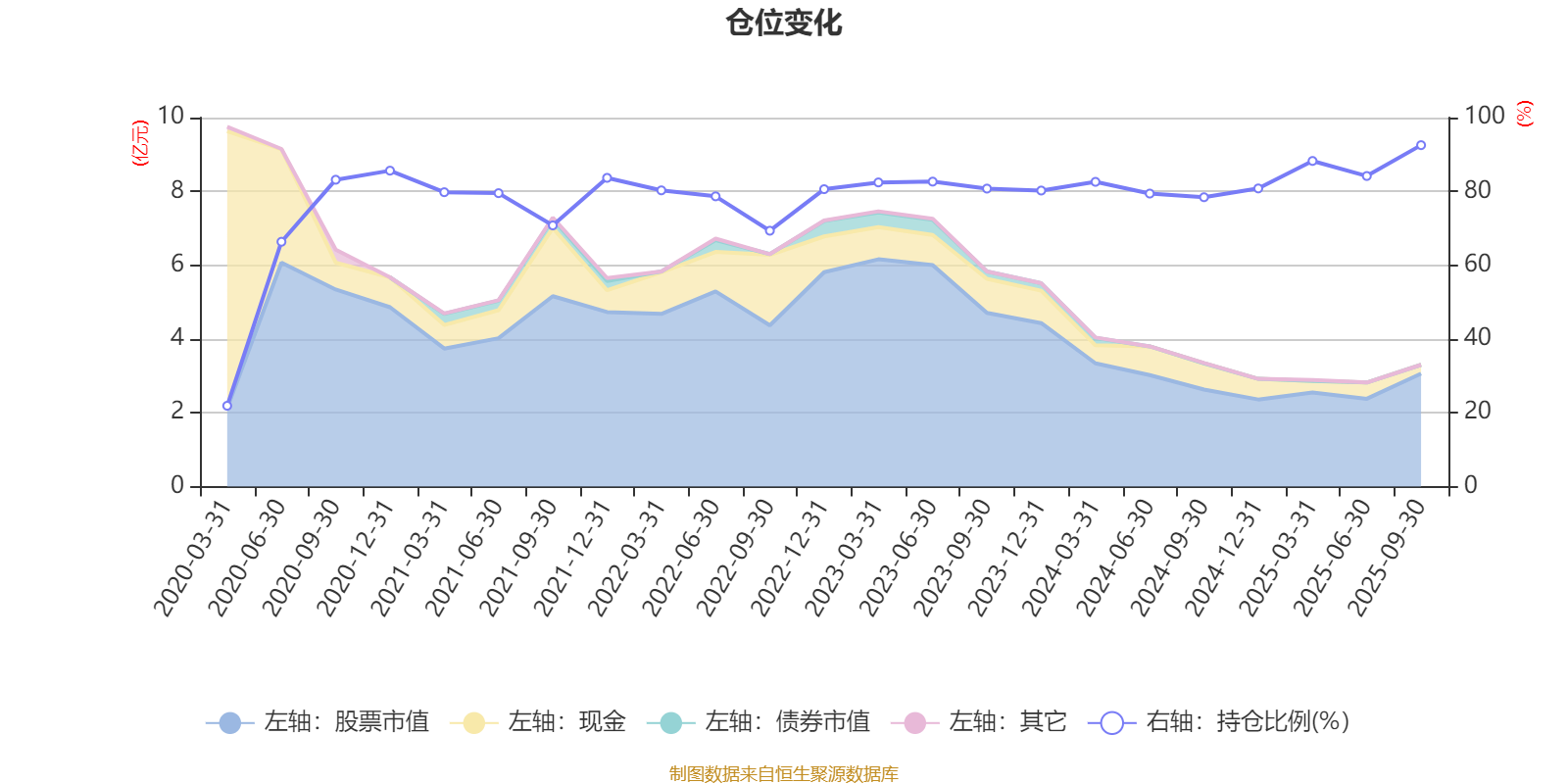 据定期报告数据统计,近三年平均股票仓位为82.74%,同类平均为86.77%。2025年三季度末基金达到92.53%的最高仓位,2020年一季度末最低,为21.9%。