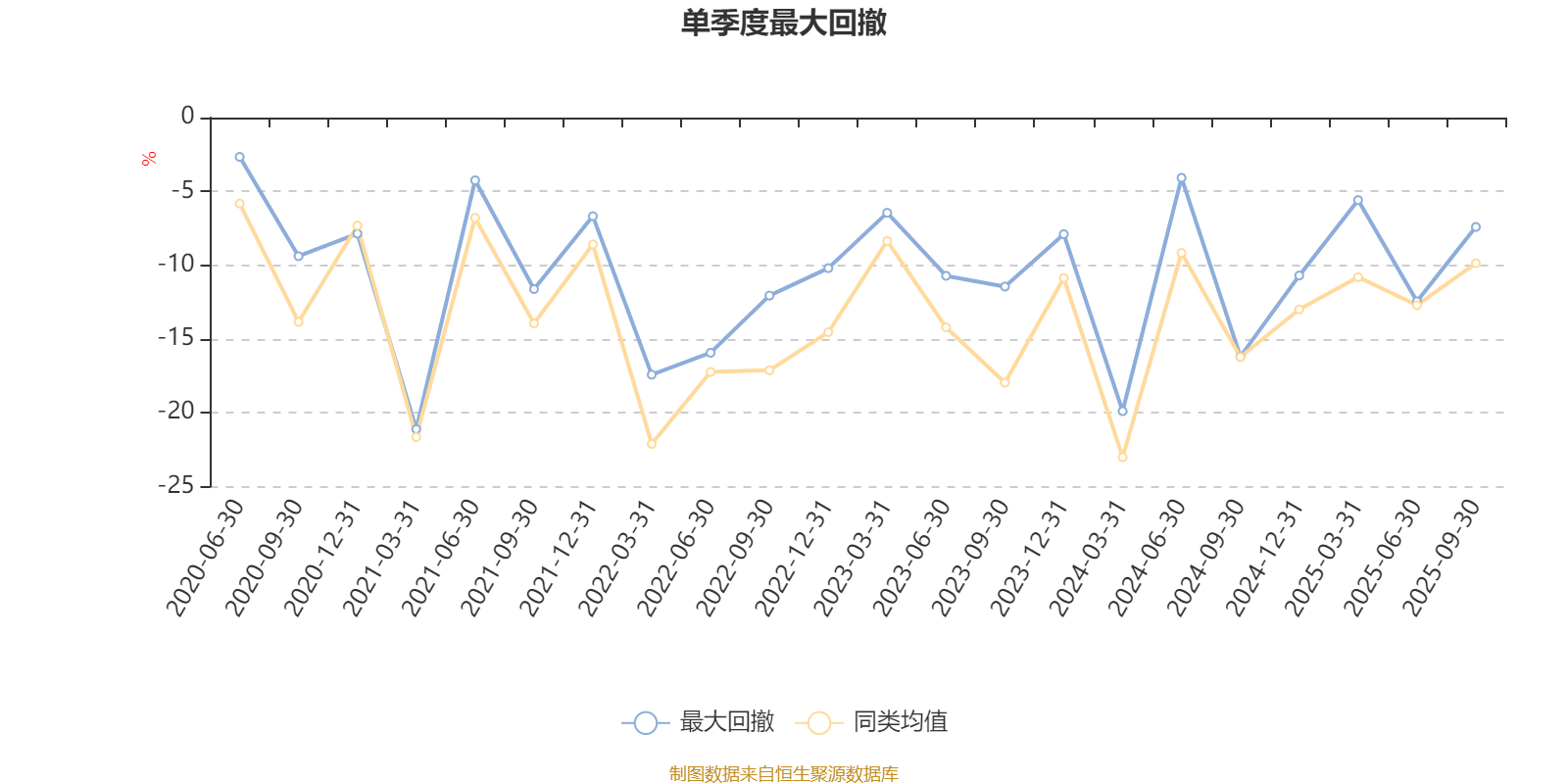 通过所选区间该基金净值增长率分位图,可以观察该基金与同类基金业绩比较情况。图为坐标原点到区间内某时点的净值增长率在同类基金中的分位数。