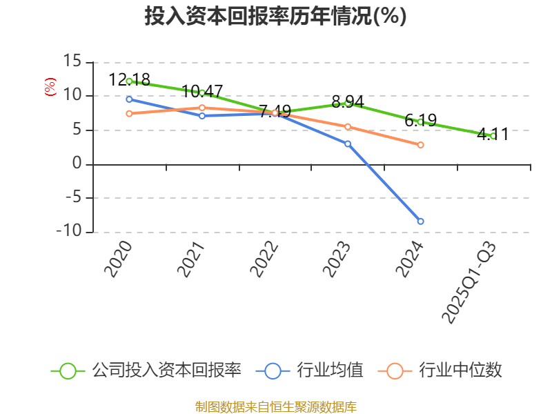 盈利能力方面, 2025年前三季度公司加权平均净资产收益率为5.65%,同比上升0.85个百分点。公司2025年前三季度投入资本回报率为4.11%,较上年同期上升0.19个百分点。