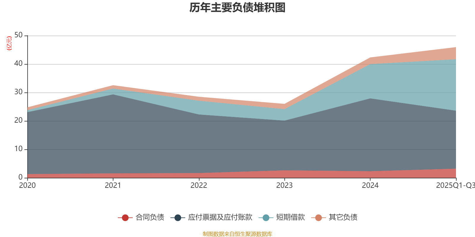 负债重大变化方面,截至2025年三季度末,公司应付票据及应付账款较上年末减少20.43%,占公司总资产比重下降7.12个百分点;短期借款较上年末增加50.27%,占公司总资产比重上升5.98个百分点;长期借款较上年末增加320.12%,占公司总资产比重上升1.77个百分点;合同负债较上年末增加38.94%,占公司总资产比重上升0.85个百分点。