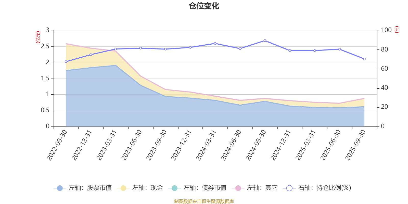 据定期报告数据统计,近三年平均股票仓位为80.64%,同类平均为83.73%。2024年三季度末基金达到89.59%的最高仓位,2022年三季度末最低,为67.64%。