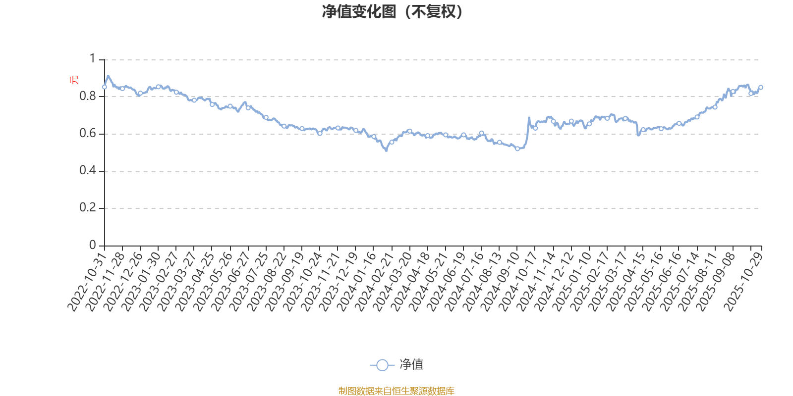 通过所选区间该基金净值增长率分位图,可以观察该基金与同类基金业绩比较情况。图为坐标原点到区间内某时点的净值增长率在同类基金中的分位数。