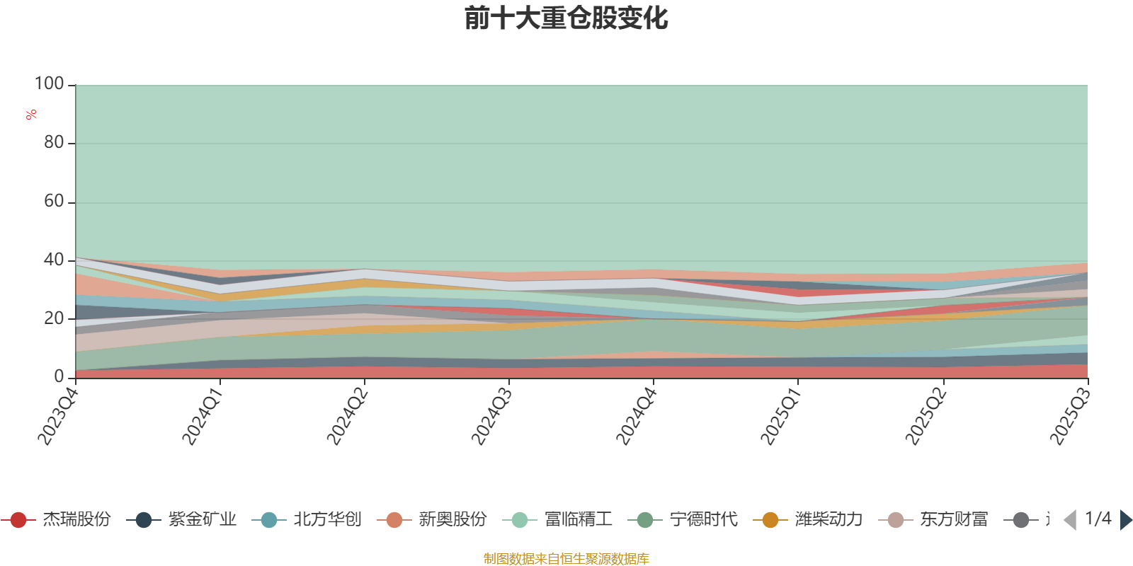 截至2025年三季度末,基金十大重仓股分别是宁德时代、杰瑞股份、紫金矿业、新宙邦、富临精工、中科曙光、浙江荣泰、北方华创、厦钨新能、工业富联。