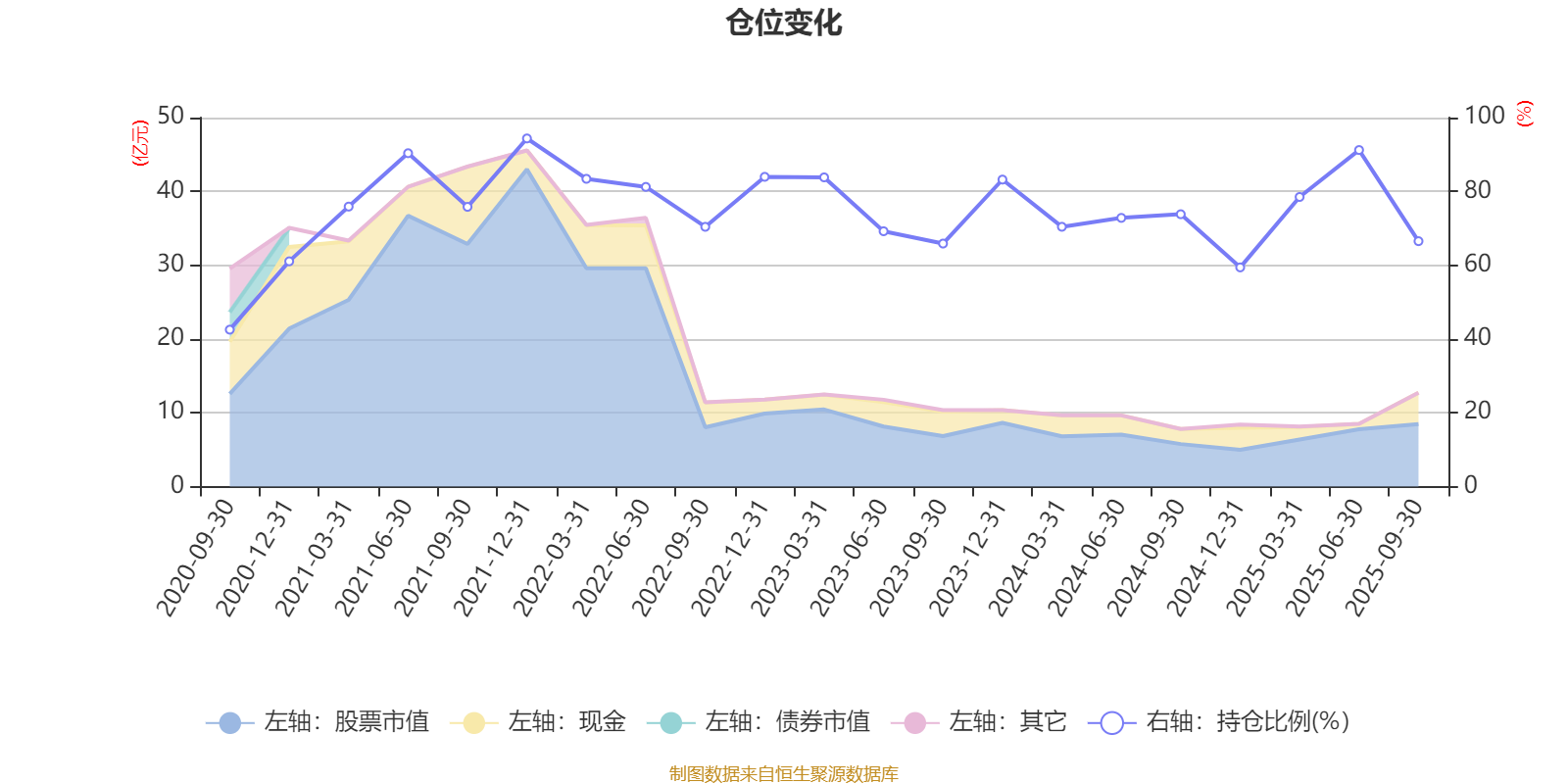 据定期报告数据统计,近三年平均股票仓位为74.89%,同类平均为85.99%。2021年末基金达到94.35%的最高仓位,2020年三季度末最低,为42.53%。