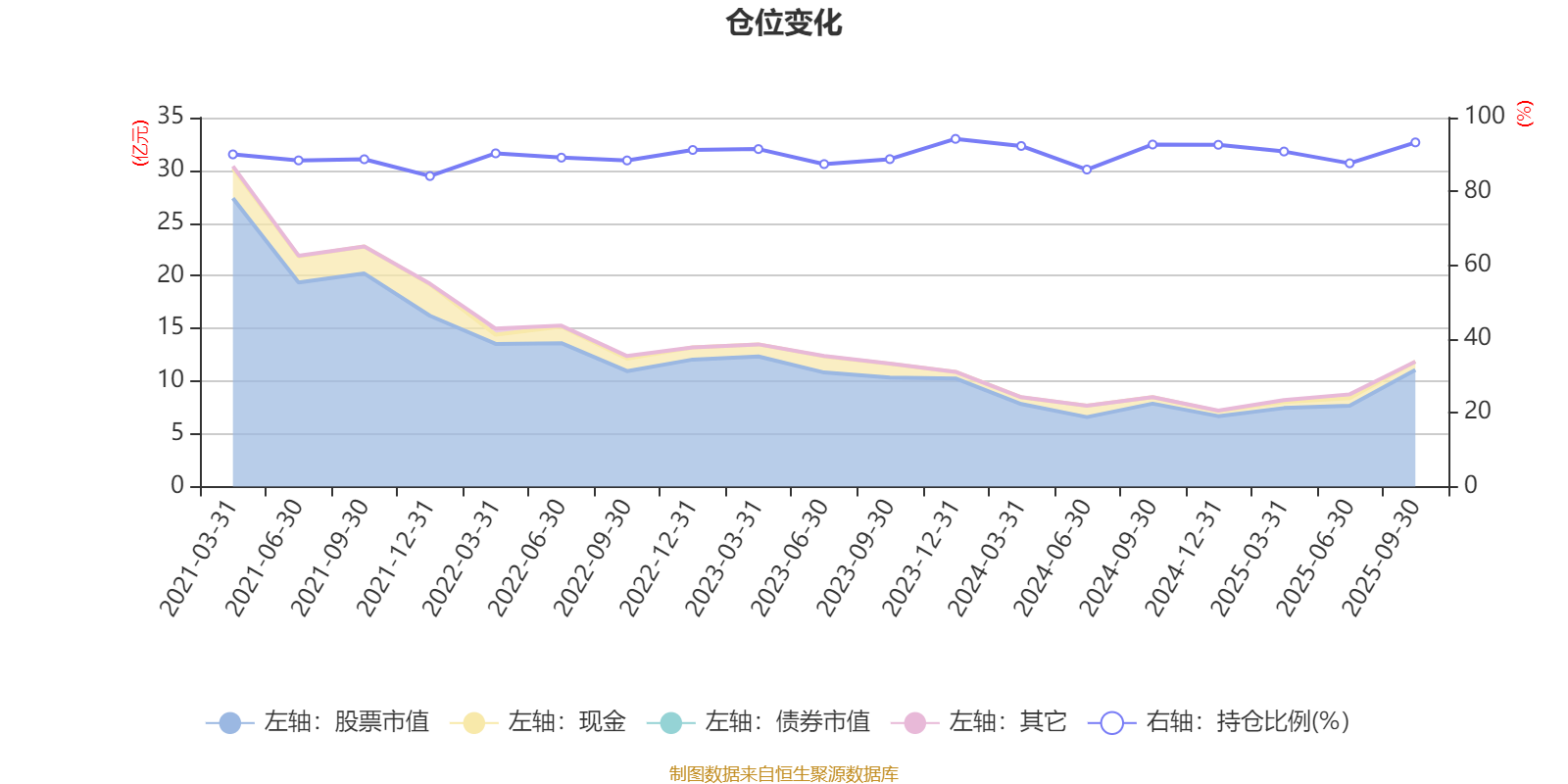 据定期报告数据统计,近三年平均股票仓位为90.7%,同类平均为86.94%。2023年末基金达到94.24%的最高仓位,2021年末最低,为84.16%。