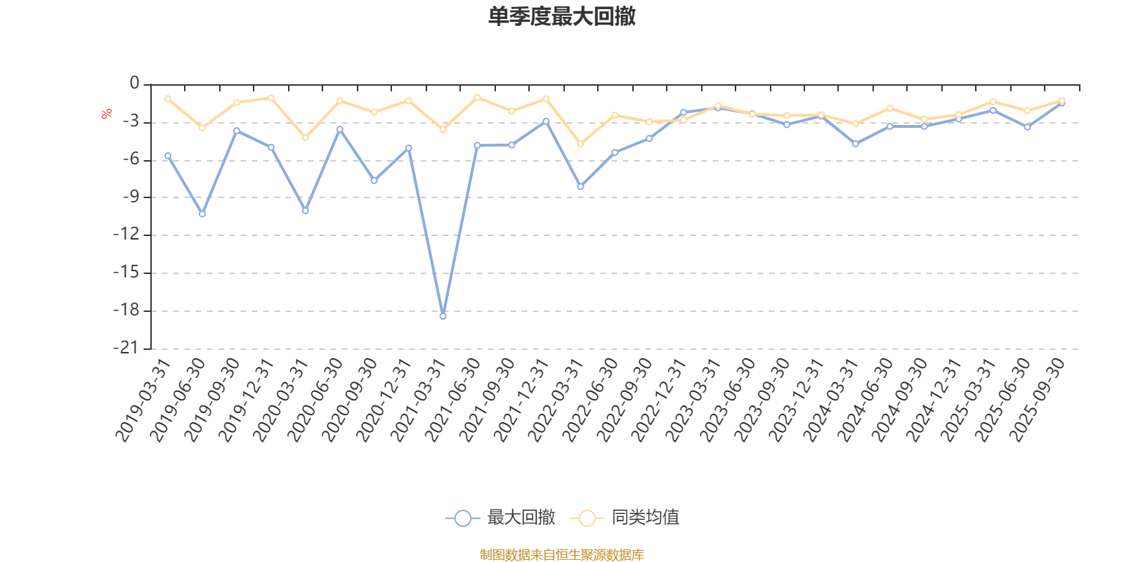 截至10月29日,基金近三年最大回撤为7.31%,同类可比基金排名324/534。单季度最大回撤出现在2021年一季度,为18.41%。