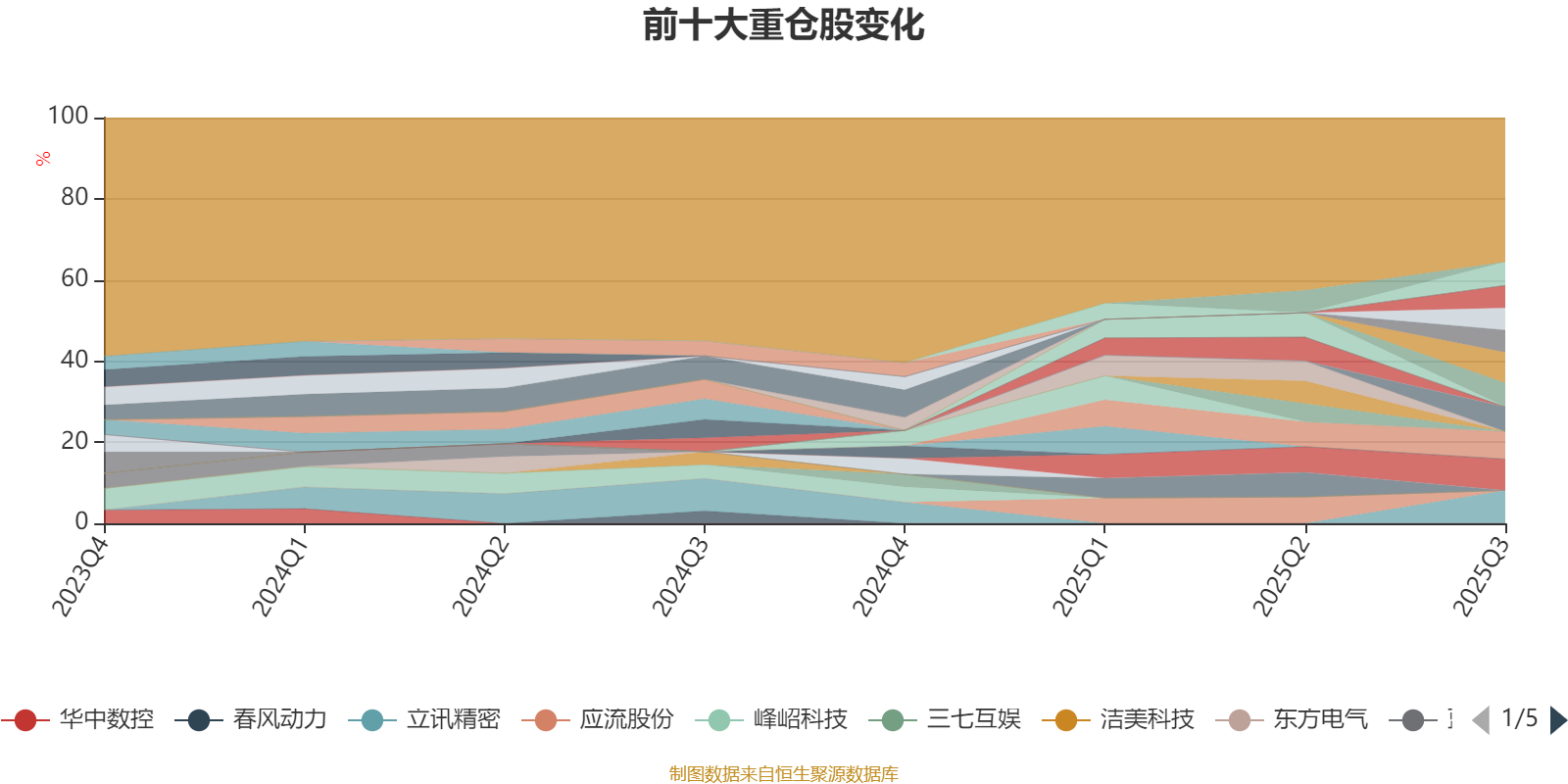 截至2025年三季度末,基金十大重仓股分别是立讯精密、深信服、沪电股份、用友网络、长川科技、艾为电子、兆易创新、长飞光纤、顺络电子、赛微电子。