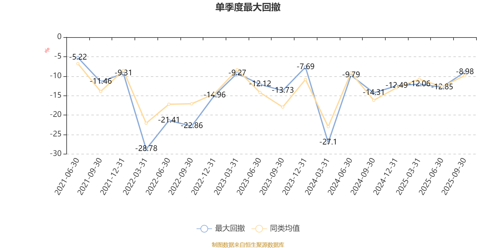 截至10月29日,基金近三年最大回撤为41.15%,同类可比基金排名58/159。单季度最大回撤出现在2022年一季度,为28.78%。