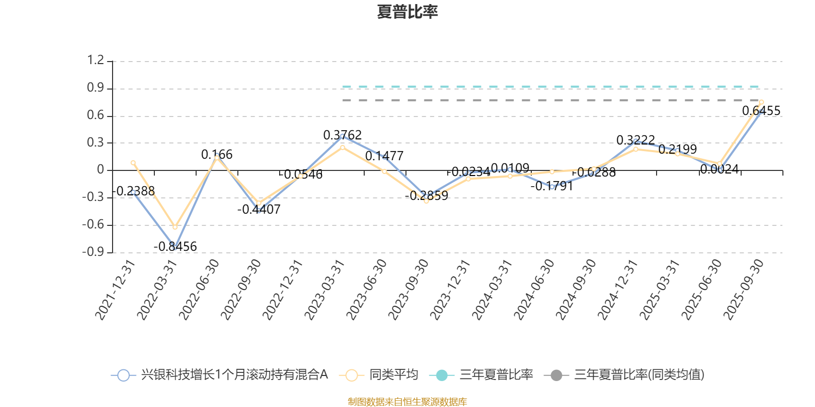 截至9月30日,基金近三年夏普比率为0.9192,位于同类可比基金39/159。