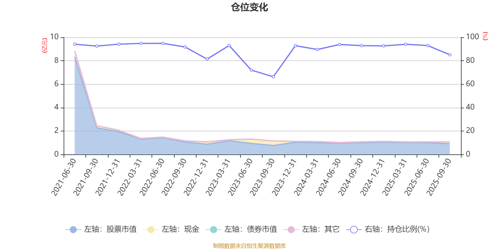 据定期报告数据统计,近三年平均股票仓位为87.27%,同类平均为86.77%。2022年上半年末基金达到94.88%的最高仓位,2023年三季度末最低,为66.37%。