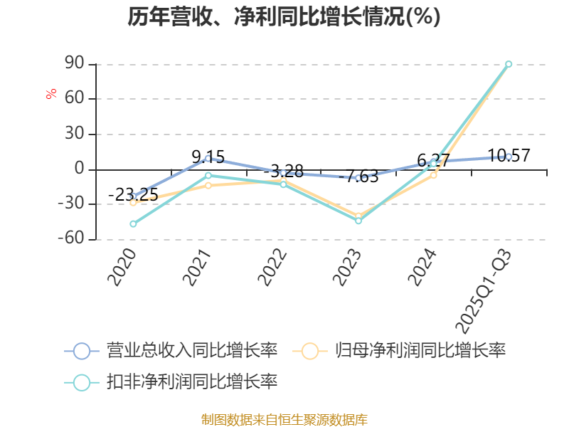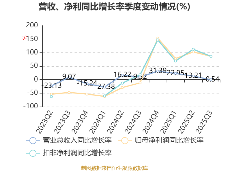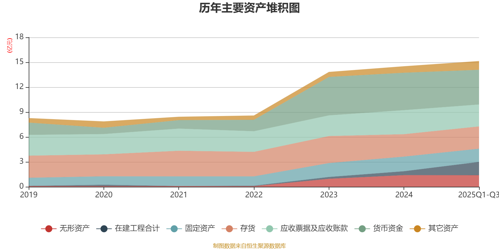 资产重大变化方面,截至2025年三季度末,公司在建工程合计较上年末增加244.33%,占公司总资产比重上升7.41个百分点;货币资金较上年末减少7.39%,占公司总资产比重下降3.5个百分点;应收票据及应收账款较上年末减少8.59%,占公司总资产比重下降2.47个百分点;其他非流动资产较上年末增加130.14%,占公司总资产比重上升2.08个百分点。