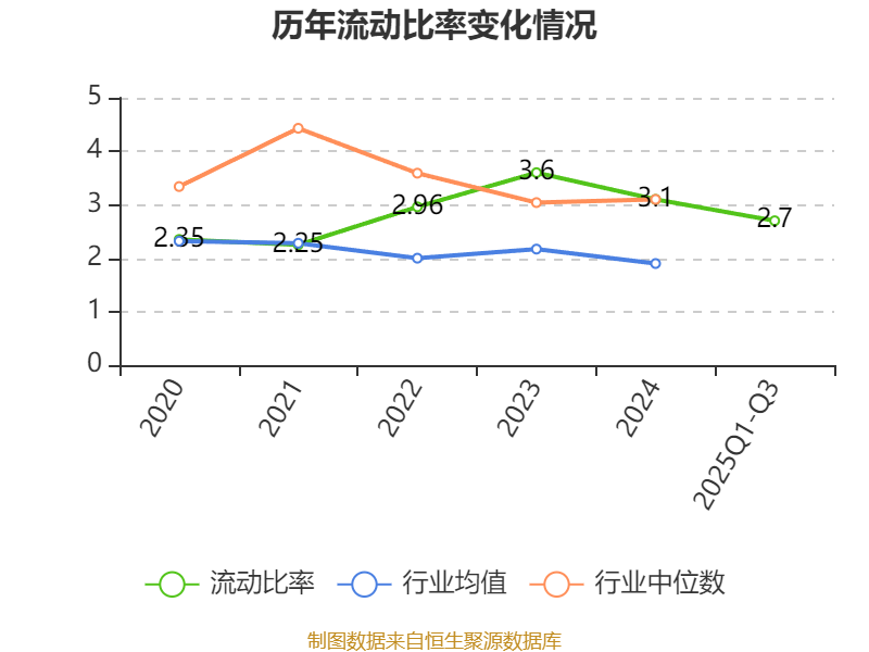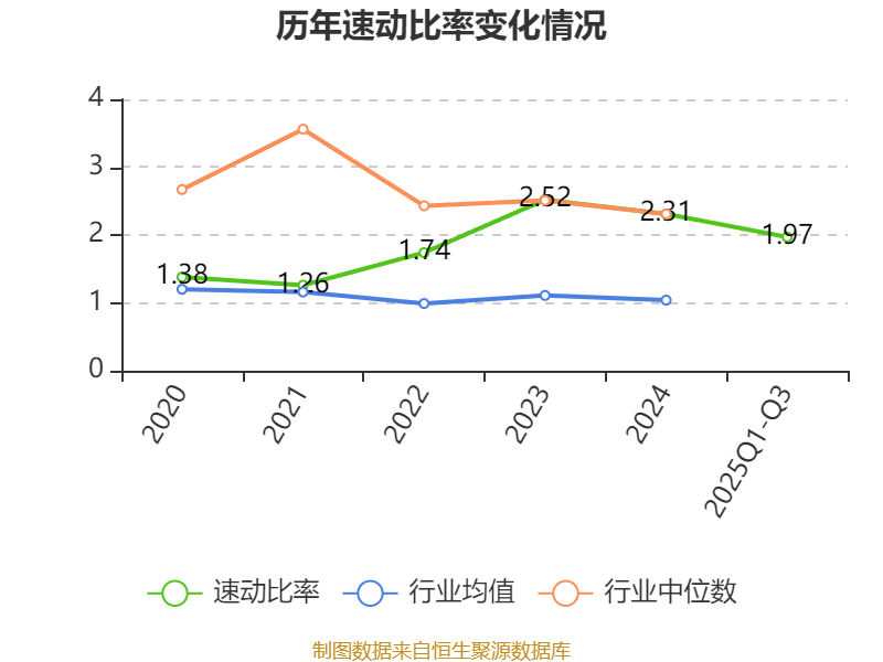2025年前三季度,公司流动比率为2.7,速动比率为1.97。