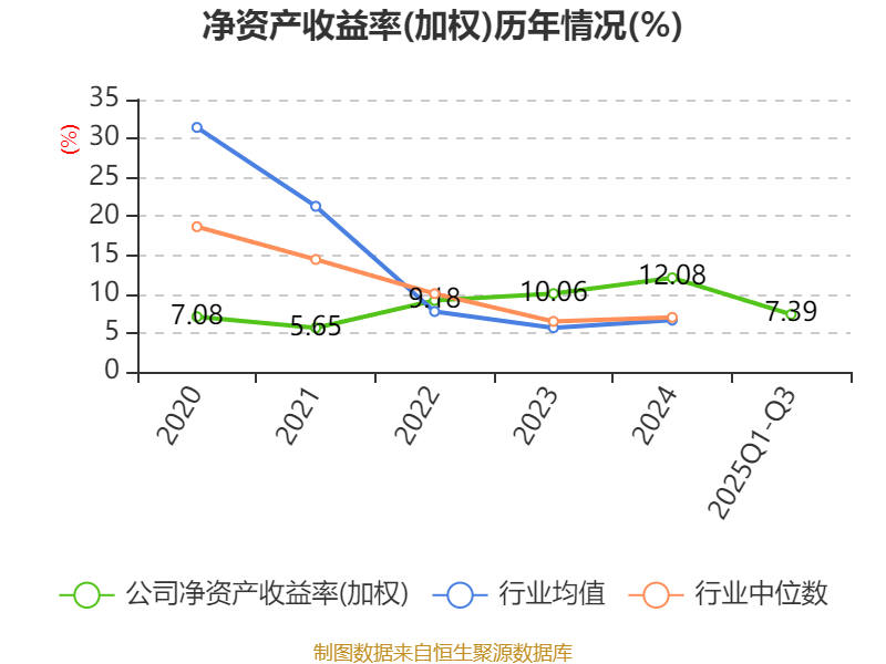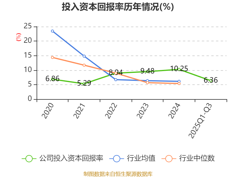 盈利能力方面, 2025年前三季度公司加权平均净资产收益率为7.39%,同比上升2.42个百分点。公司2025年前三季度投入资本回报率为6.36%,较上年同期上升2.48个百分点。