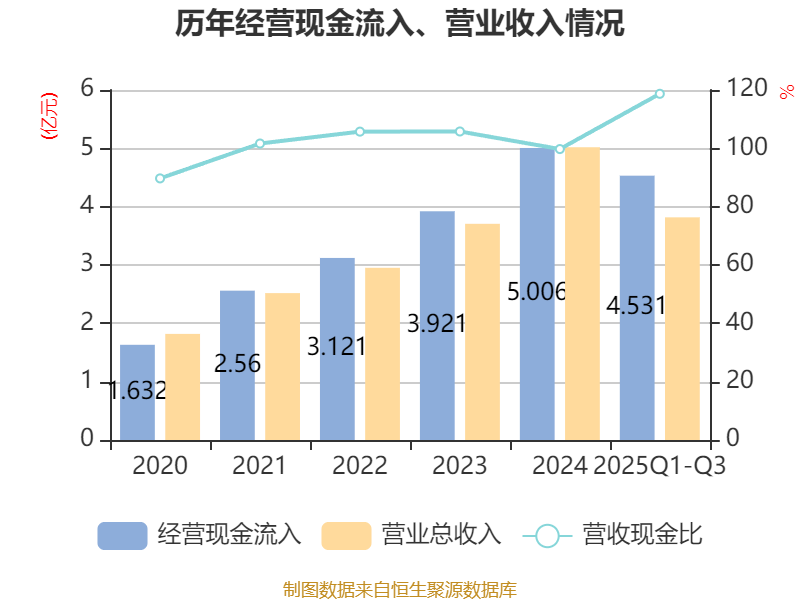 2025年前三季度,公司流动比率为3.3,速动比率为2.89。