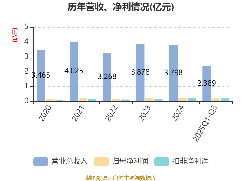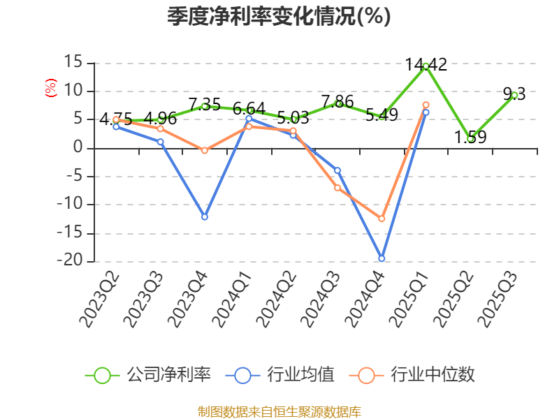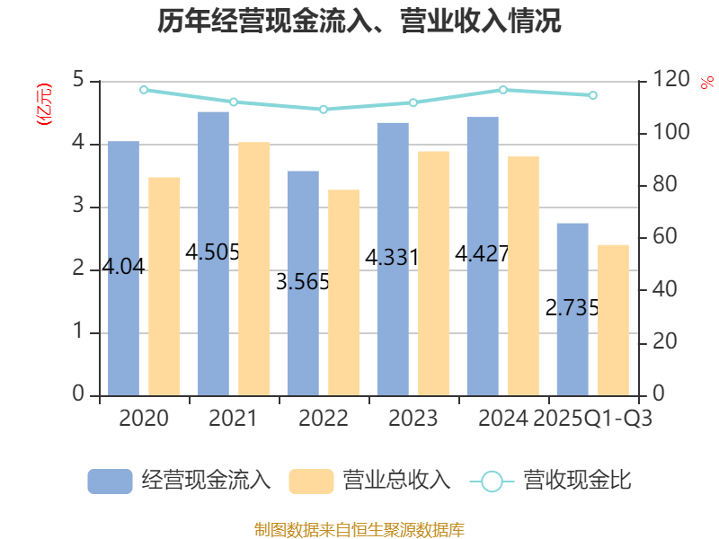 2025年前三季度,公司流动比率为3.93,速动比率为3.62。