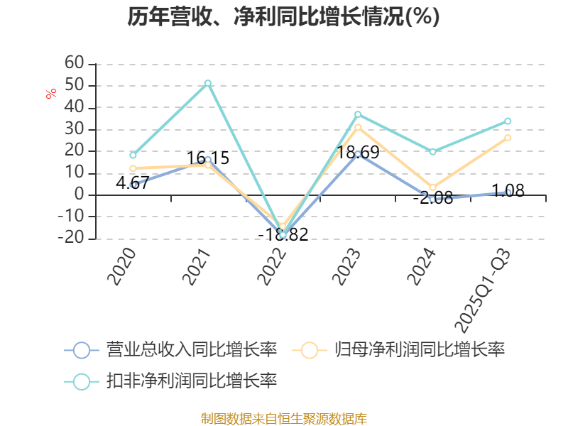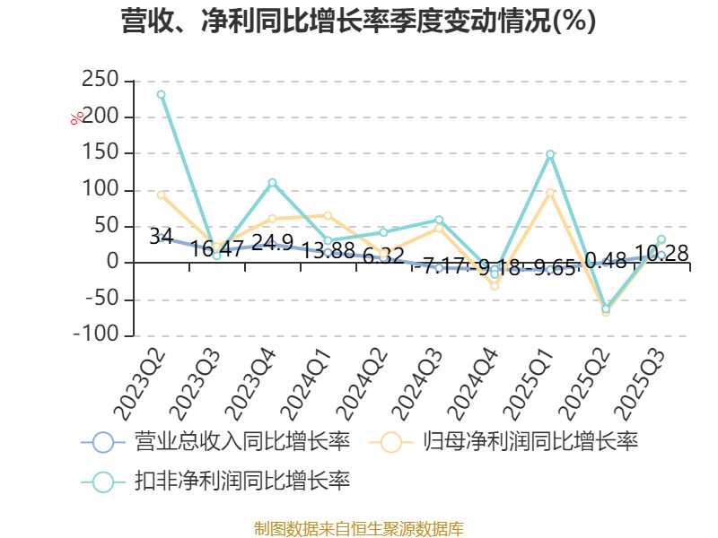 资产重大变化方面,截至2025年三季度末,公司货币资金较上年末减少4.65%,占公司总资产比重下降2.79个百分点;应收票据及应收账款较上年末增加50.45%,占公司总资产比重上升2.15个百分点;预付款项较上年末增加117.93%,占公司总资产比重上升0.76个百分点;固定资产较上年末减少2.77%,占公司总资产比重下降0.29个百分点。